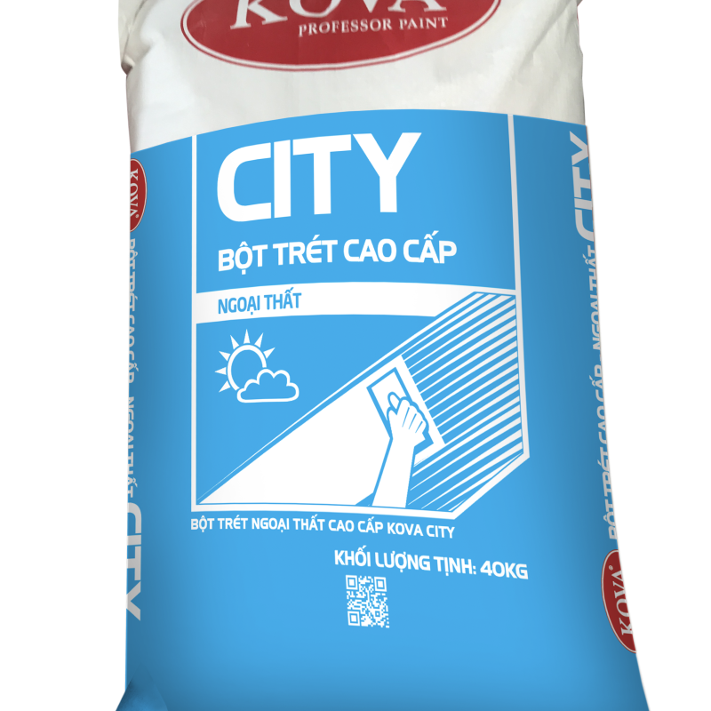 BỘT TRÉT NGOẠI THẤT CAO CẤP KOVA CITY là loại bột trét được thiết kế để làm phẳng tường ngoại thất trước khi sơn phủ, đã được nhiệt đới hóa hoàn toàn, phù hợp với hầu hết các loại công trình xây dựng.