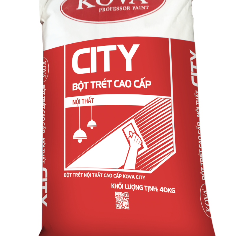 BỘT TRÉT NỘI THẤT CAO CẤP KOVA CITY là loại bột trét thông dụng để làm phẳng tường trong nhà trước khi sơn phủ, đã được nhiệt đới hóa hoàn toàn, phù hợp với tất cả các loại công trình.