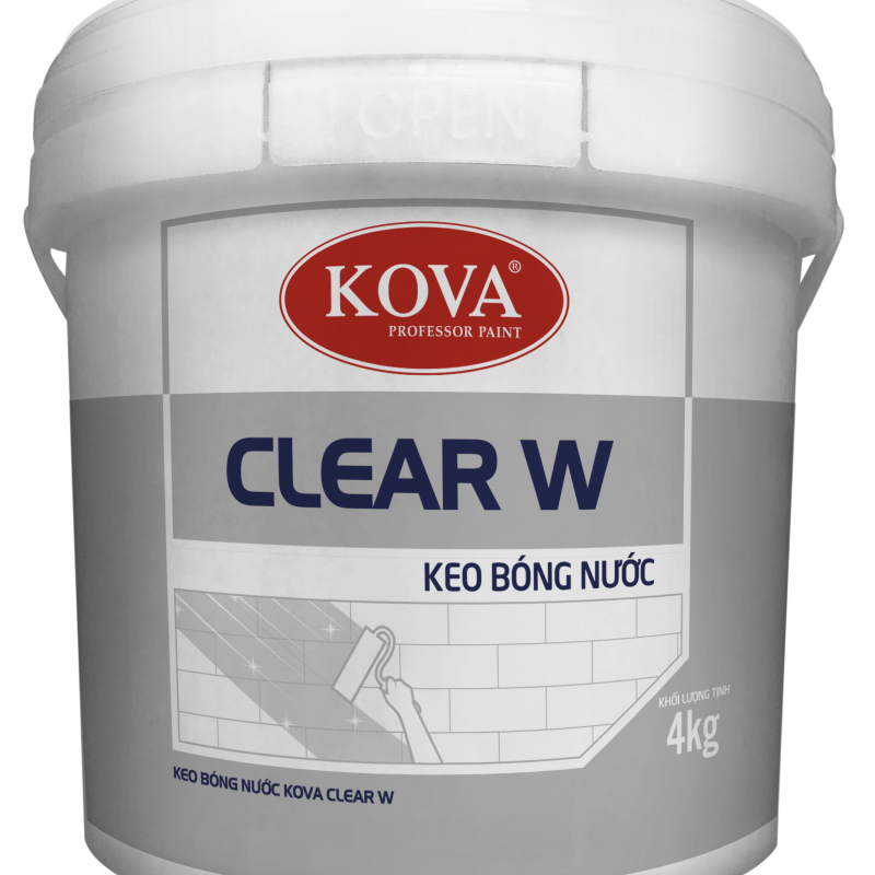 Keo bóng nước KOVA Clear W là loại keo trong suốt một thành phần có độ bóng cao, dùng để phủ bóng cho các bề mặt đã được sơn hoàn thiện bằng các loại sơn nước trang trí, sơn trang trí đặc biệt của KOVA (Sơn đá nghệ thuật, vân đá, nhũ, Texture, v.v…). Keo bóng nước có thể áp dụng tốt cho các bề mặt trong nhà và ngoài trời.
