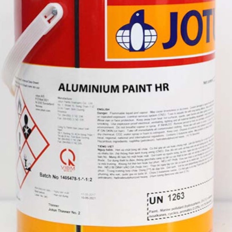 Sơn chịu nhiệt Aluminium Paint HR 5L là loại sơn 1 thành phần khô oxy hóa gốc alkyd biến tính có chứa styrene. Sản phẩm này là loại sơn chịu nhiệt lên tới 250°C. Có thể dùng làm lớp phủ nhủ nhôm hoàn thiện cho hệ sơn alkyd. Có thể dùng làm lớp chống rỉ, lớp trung gian hay lớp phủ hoàn thiện trong môi trường khí quyển. Thích hợp dùng làm sơn phủ trên bề mặt chuẩn bị tốt của thép carbon và nhôm.