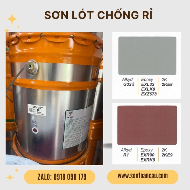 Sơn lót chống rỉ Benzo là một loại sơn 1 thành phần gốc dầu Alkyd, dễ dàng sử dụng, thời gian khô nhanh, có thể sờ được sau 30 phút sơn, độ bám dính tốt, độ phủ cao, tạo bề mặt cứng. Phù hợp với mọi hình dạng kết cấu kim loại không mạ kẽm, như: Nhà thép tiền chế, công trình nhà xưởng sắt thép, cửa cổng sắt ngoài trời, tấm thép, hoa văn kim loại trong nhà, kết cấu cầu thép, cột kèo, xà gồ, lan can,…
