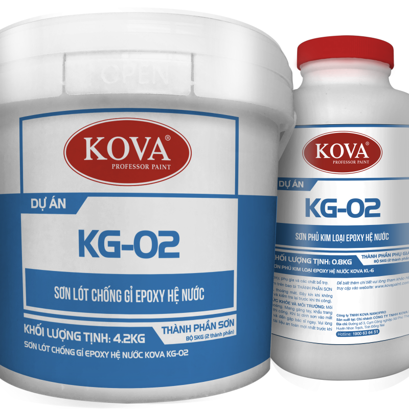 Sơn lót chống gỉ Epoxy hệ nước KOVA KG-02 là sơn epoxy chống gỉ hệ nước, hai thành phần. Ứng dụng tốt lên cấu kiện kim loại. Được dùng để lót cho các bề mặt sắt thép, kim loại trong nhà và ngoài trời, bồn chứa , đường ống, cửa sắt, cầu cống, biển báo giao thông