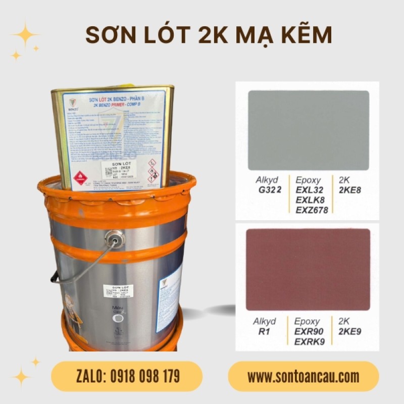 Sơn lót mạ kẽm 2K Benzo là một loại sơn 2 thành phần có gốc nhựa Polyurethane. Độ bám dính tuyệt vời trên sắt thép mạ kẽm, bảo vệ cực tốt ngoài trời và trong nhà, kháng hoá chất, khả năng chịu nhiệt, nước, dầu mỡ, tia nắng UV chống ăn mòn cao.