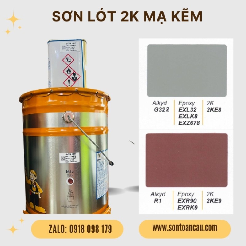Sơn lót mạ kẽm 2K Benzo là một loại sơn 2 thành phần có gốc nhựa Polyurethane. Độ bám dính tuyệt vời trên sắt thép mạ kẽm, bảo vệ cực tốt ngoài trời và trong nhà, kháng hoá chất, khả năng chịu nhiệt, nước, dầu mỡ, tia nắng UV chống ăn mòn cao.