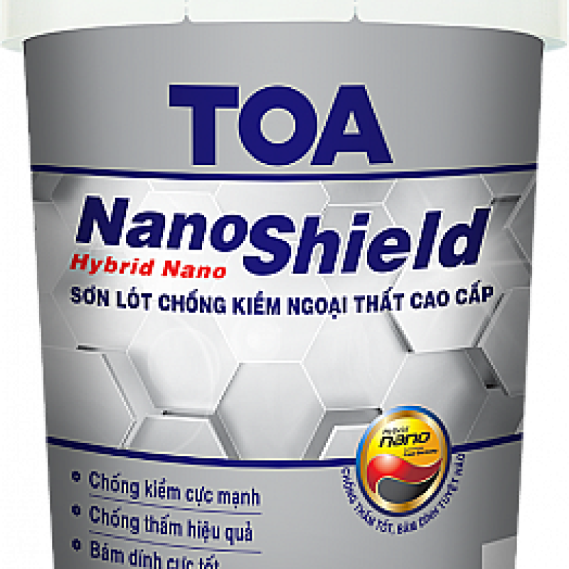 Sơn lót chống kiềm ngoại thất cao cấp TOA NanoShield là loại sơn lót đặc biệt, được sản xuất từ nhựa Styrene Acrylic, không chứa chì và thủy ngân trong công thức, với những tính năng: độ bám dính cao, kháng kiềm, kháng nước hiệu quả.