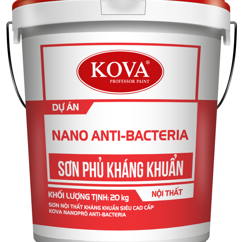 Sơn Nội Thất Kháng Khuẩn Siêu Cao Cấp KOVA NANO Anti-Bacteria là loại sơn công nghệ Nano hệ Acrylic phủ trong nhà, với khả năng kháng khuẩn hiệu quả. KOVA Nano Anti-bacteria Kháng Khuẩn dùng để sơn phủ trang trí trong nhà, đặc biệt phù hợp với các công trình liên quan trực tiếp đến sức khỏe con người hoặc có yêu cầu cao về an toàn vệ sinh phòng bệnh như bệnh viện, trường học, nhà máy thực phẩm, dược phẩm.