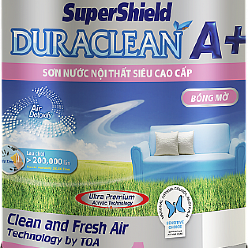 Sơn nước nội thất siêu cao cấp SuperShield DuraClean A+ bóng mờ được khuyến khích sử dụng cho phòng trẻ em, bệnh viện, nhà trẻ, nhà hàng,… những nơi có yêu cầu cao về vệ sinh.
