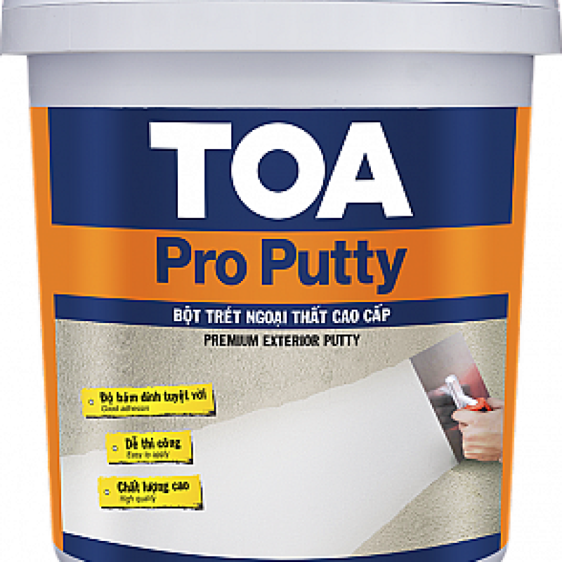 TOA Pro Putty dùng để làm nhẵn bề mặt tường bê tông, bê tông đúc sẵn, gạch, xi măng và thạch cao trước khi sơn lót hoặc sơn phủ.