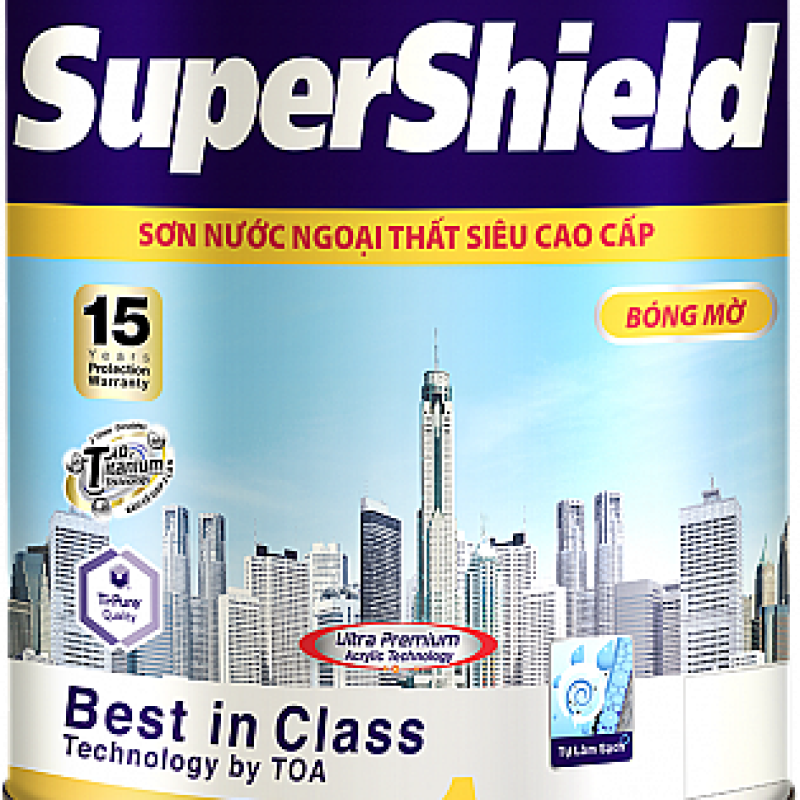 Sơn nước ngoại thất siêu cao cấp SuperShield bóng mờ được chế tạo từ nhựa Acrylic nguyên chất, áp dụng công nghệ Tự Làm Sạch và công nghệ Titanium hiện đại. Sản phẩm có những tính năng nổi trội: