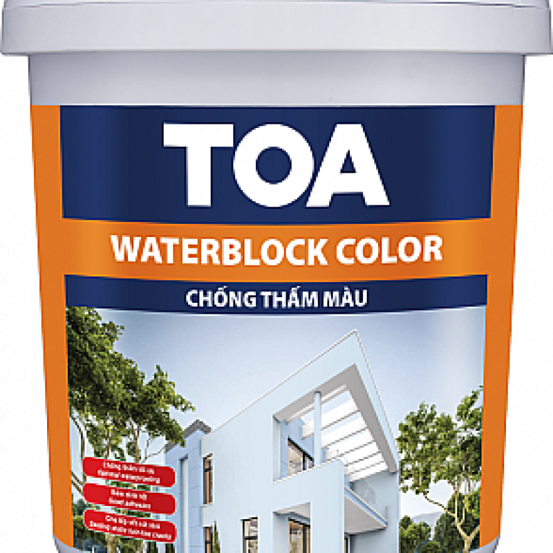 TOA Waterblock Color – Chống Thấm Màu thích hợp sử dụng để chống thấm cho các bề mặt tường đứng ngoại thất cũ và mới như bê tông, xi măng, gạch, hồ, vữa…
